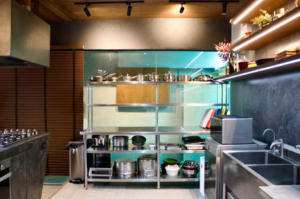 - An adaptable studio space, equipped with a touch smart screen for cooking demos, talks, and intimate events.